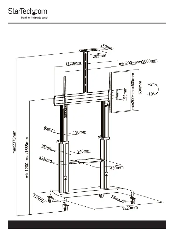 StarTech.com STNDMTV100 - Product Dimensions; Front View