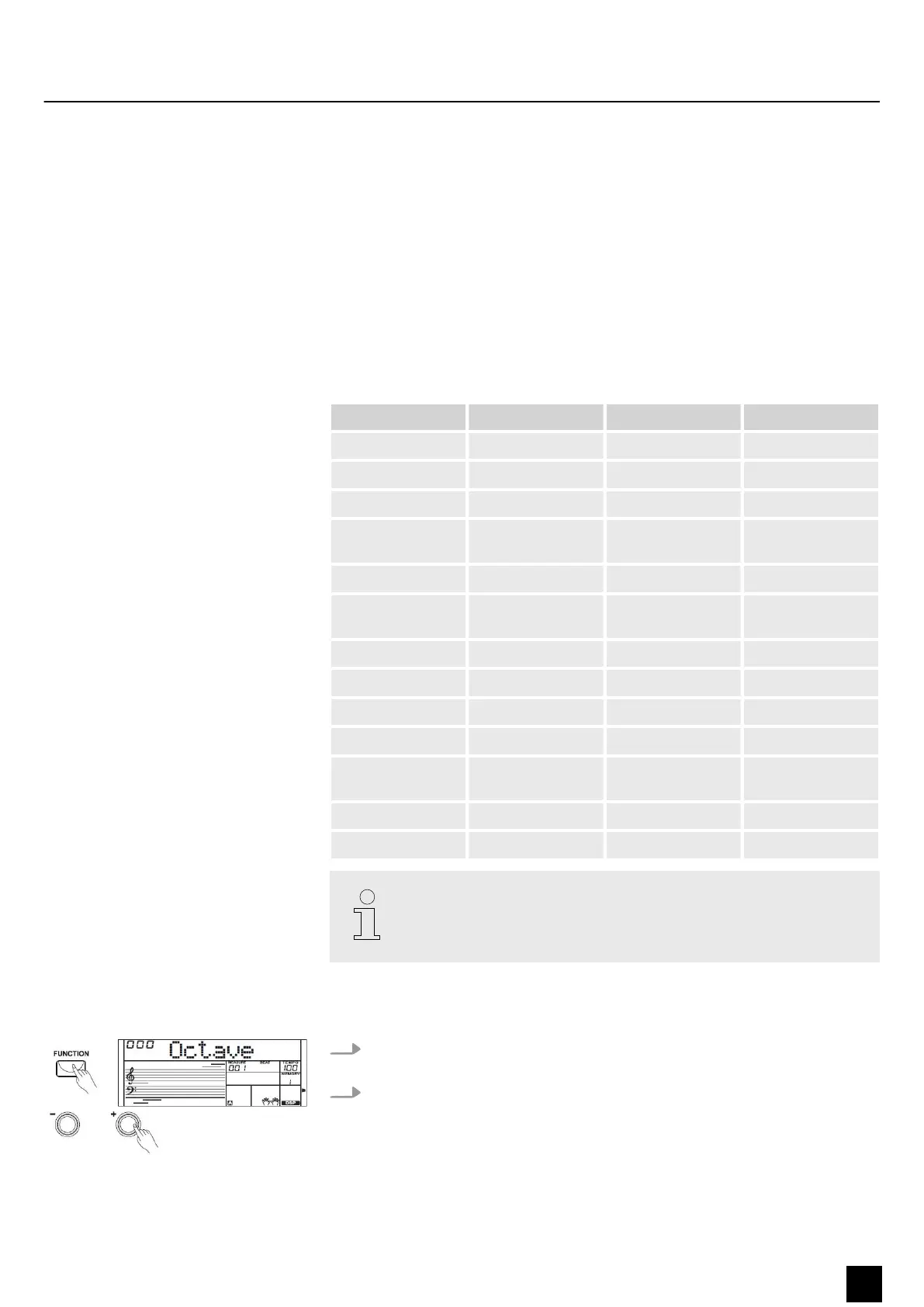 appear each time after activation is ‘Octave’ . Press the [FUNCTION] button repeatedly