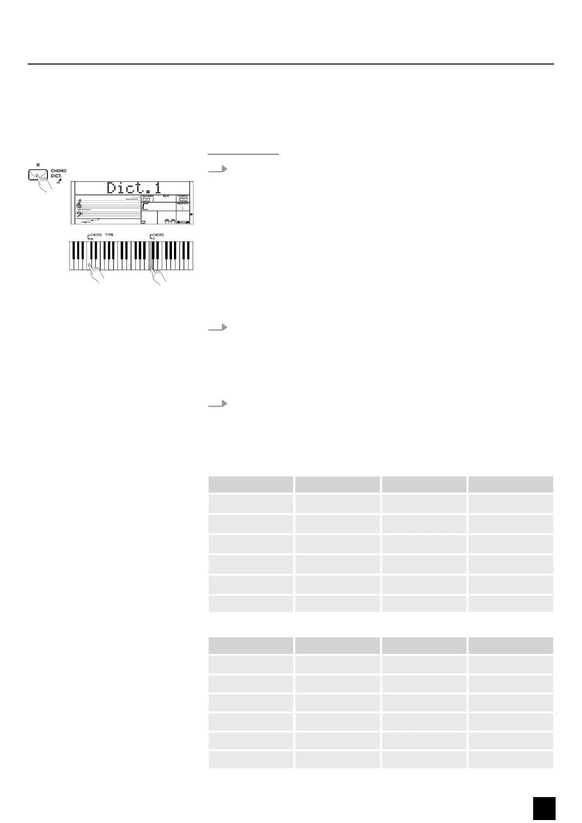 Keep the [CHORD DICT.] button pressed for two seconds to enter the ‘DICT.1’