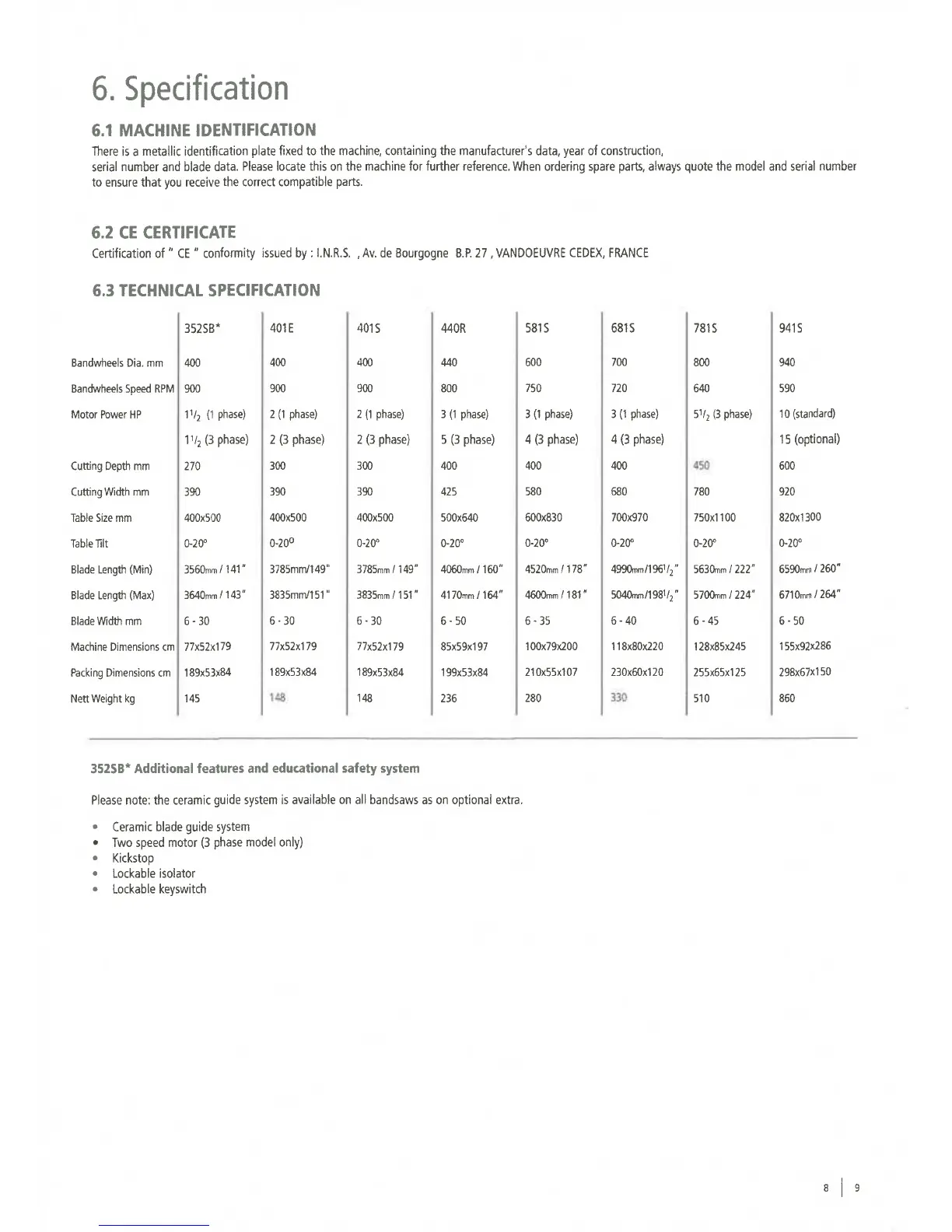 STARTRITE 401S - Blade Mounting and Adjustment; Setting the Blade Guides