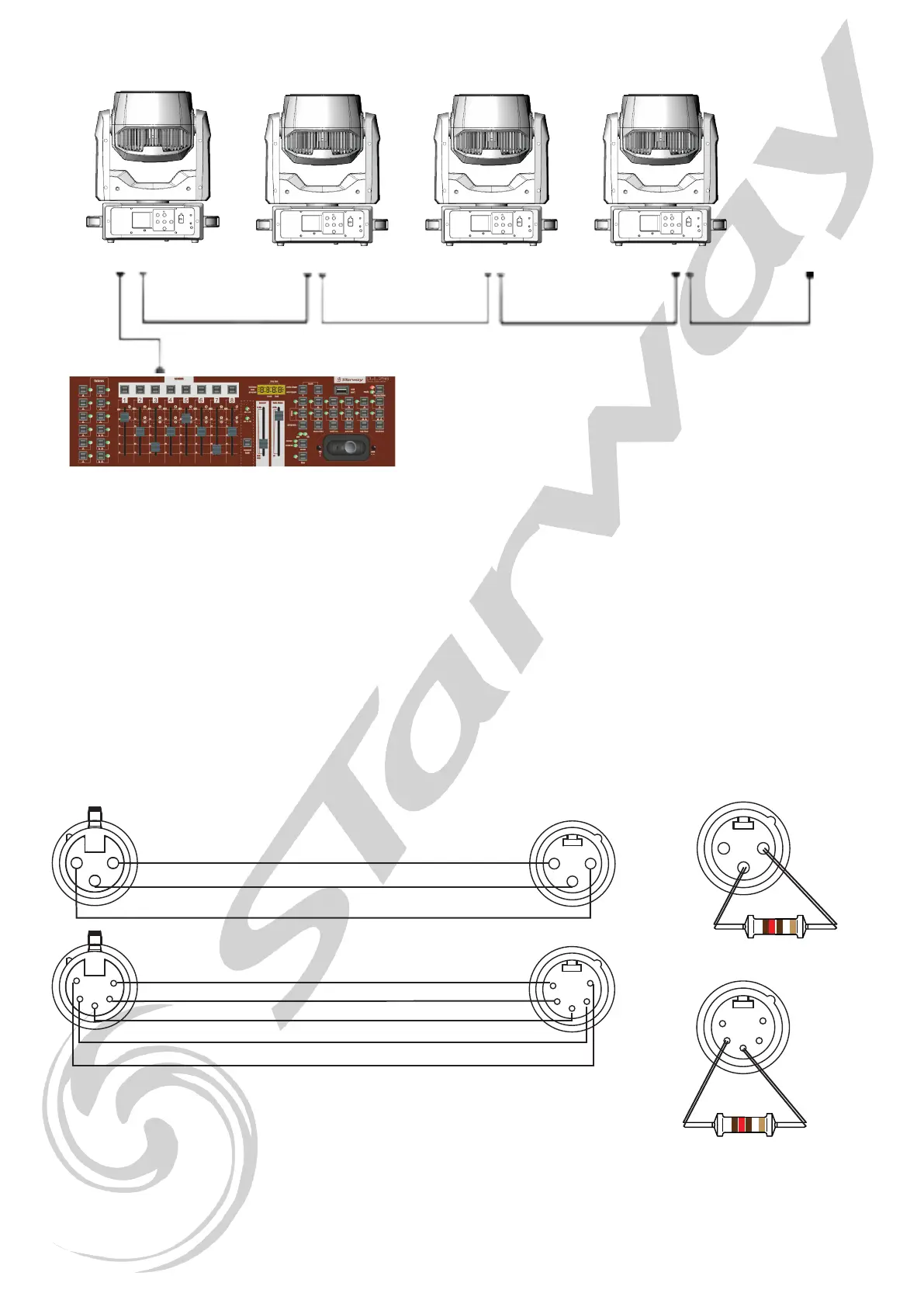 - Raccorder le côté mâle du câble DMX à la sortie de la console DMX512.