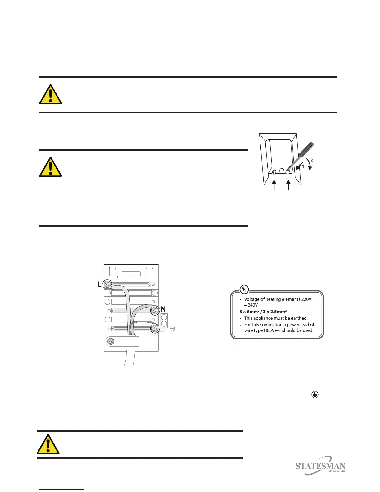 The electric hob is manufactured to work with single-phase alternating current (220V-240V/50Hz.