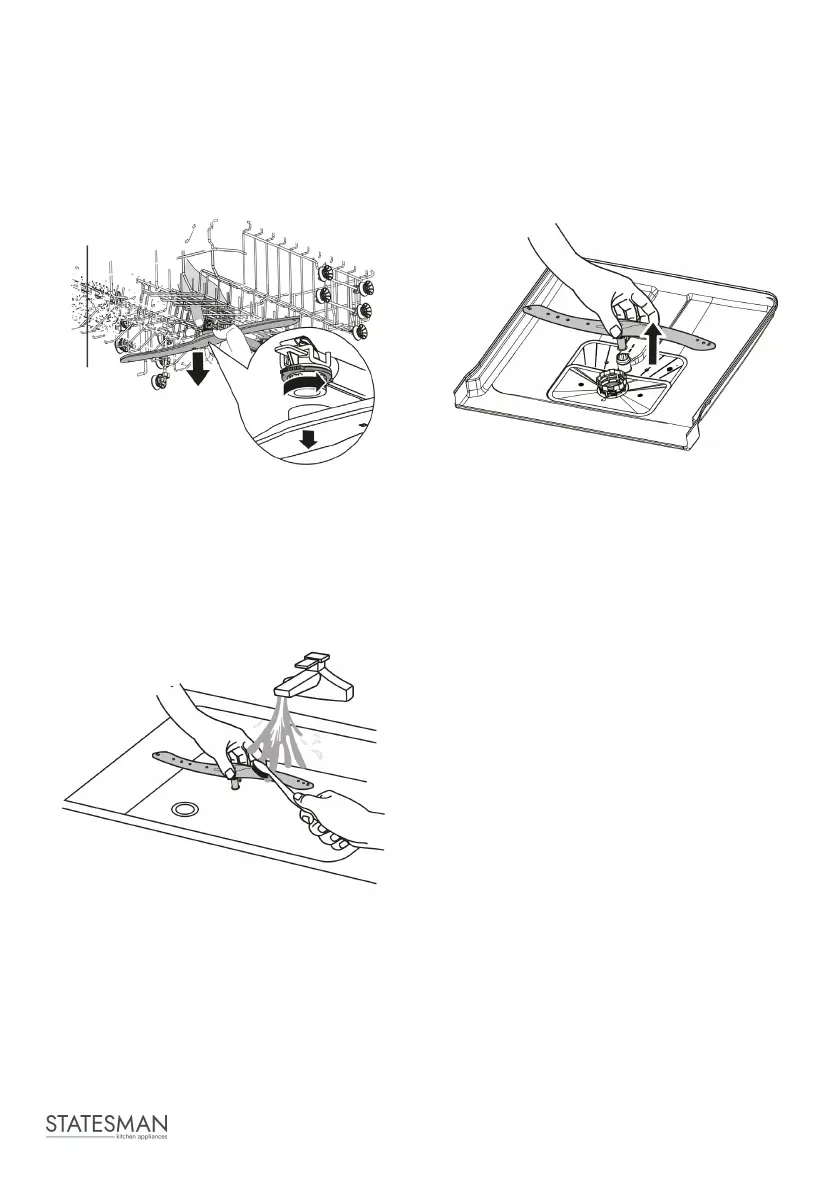To clean the spray arms, follow the instructions below: