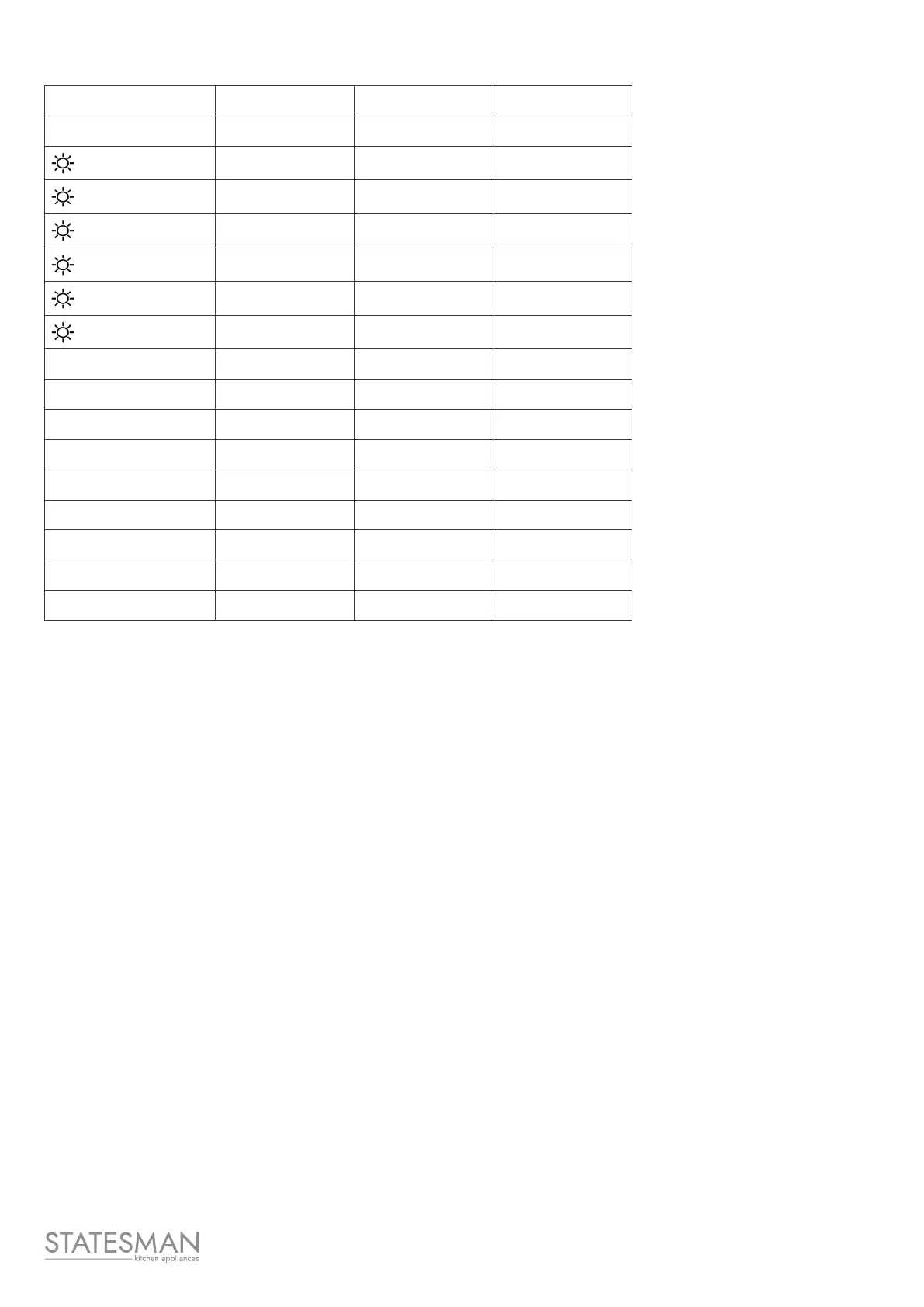 Program Load(Kg) Temp °C Default Time