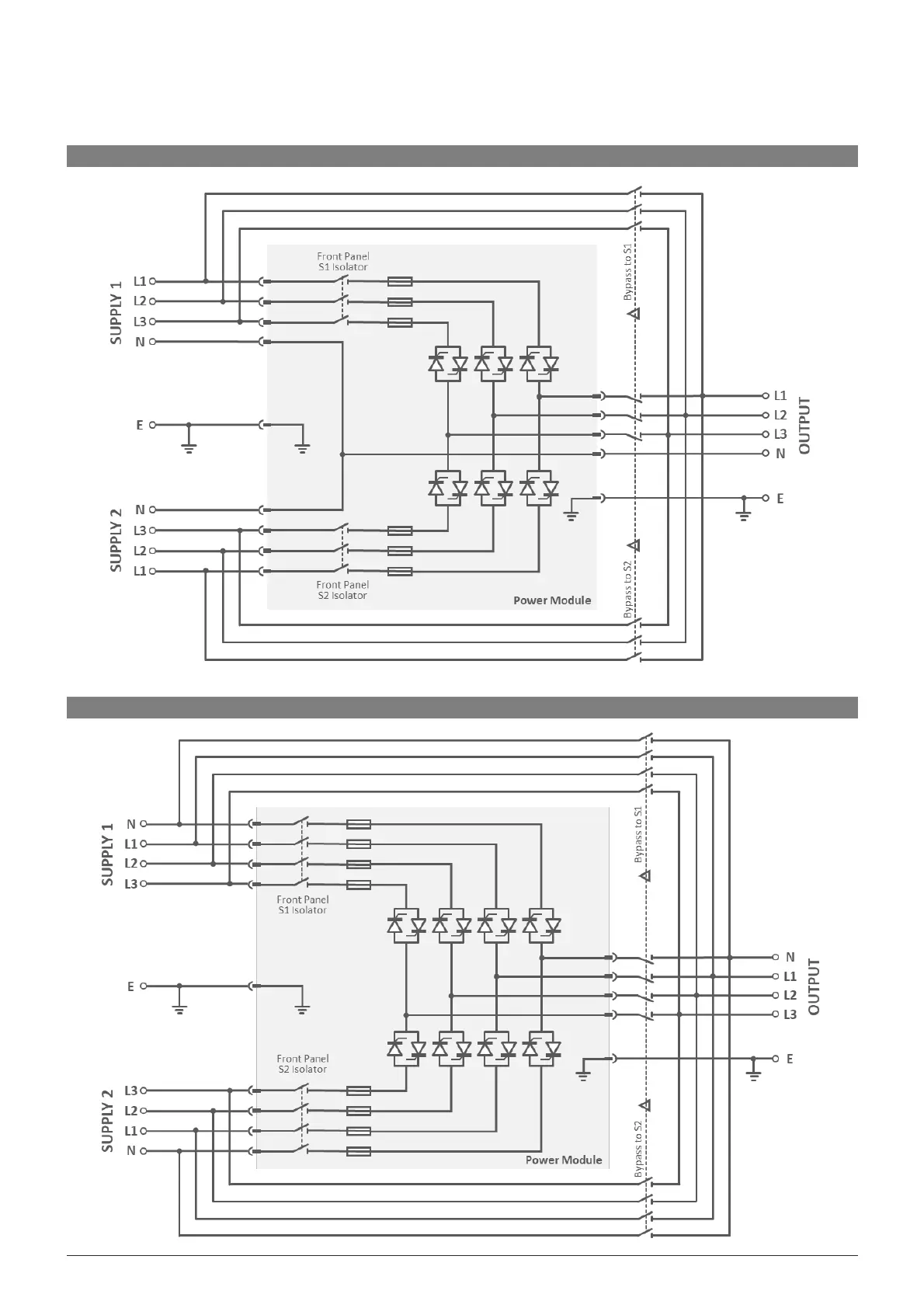 Static Power iSTS W - Line Diagram: 3 Phases, Neutral Available and Not Switched; Line Diagram: 3 Phases, Neutral Switched