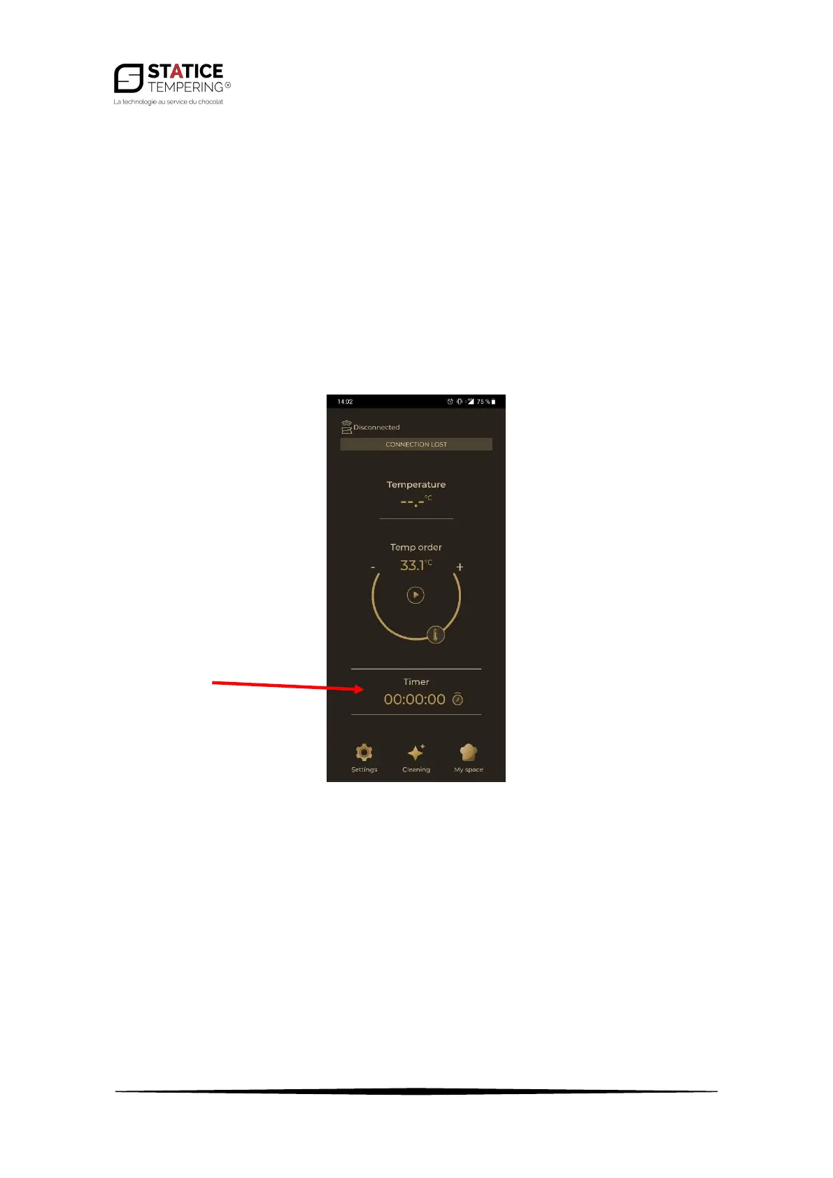 • Once the temperature set value is reached, the button turns green.