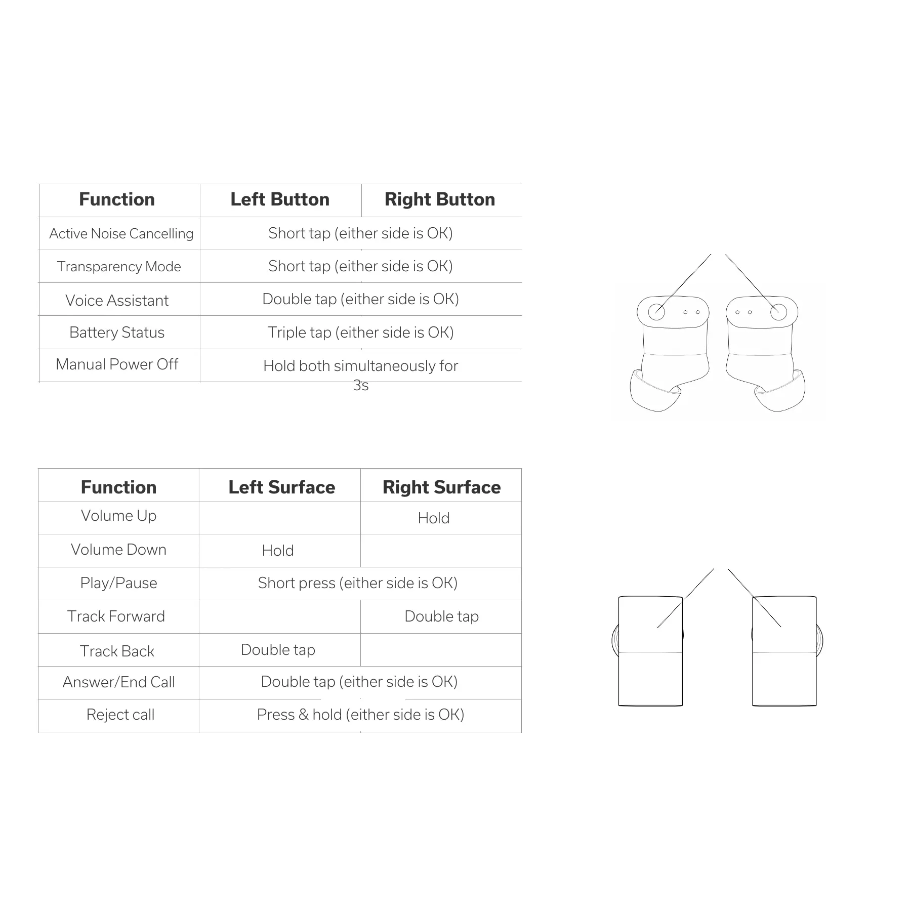 Status BETWEEN 3ANC - Controlling the Between 3 ANC; Physical Button Controls; Touch Control Functions