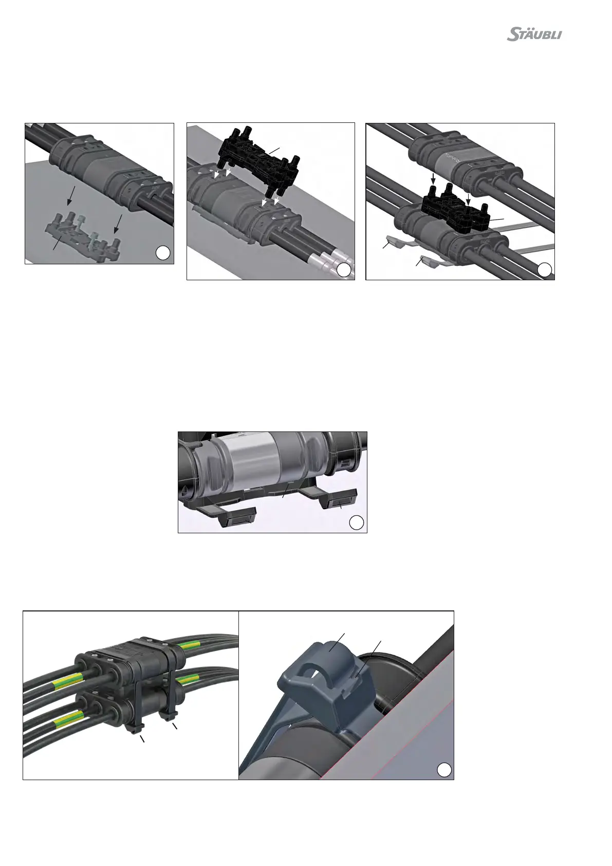 Pasar un sujetacables (C) por cada ranura de la pieza suelta