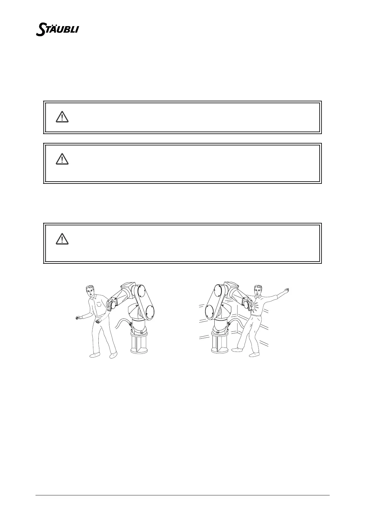 by the user of the robot cell. All staff using STÄUBLI robots must be familiar with the warnings and