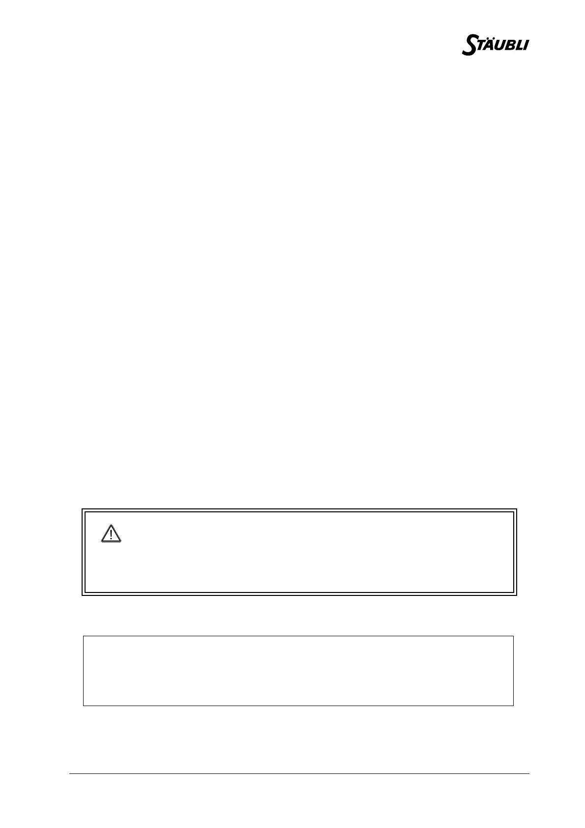 document, or if further information is required, please contact the STÄUBLI After Sales Department, "Robot