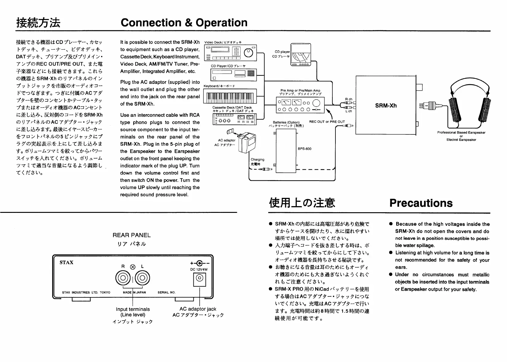 STAX SRM-Xh - Connection & Operation; Precautions