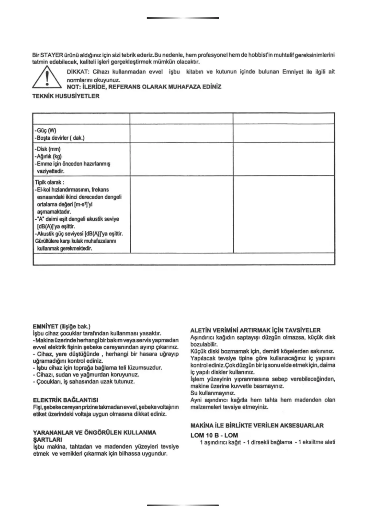 Lütfen elektrikli el aletinizin tip etiketi üzerindeki ürün koduna dikkat edin. Tek tek aletlerin ticari kodları değişik olabilir.
