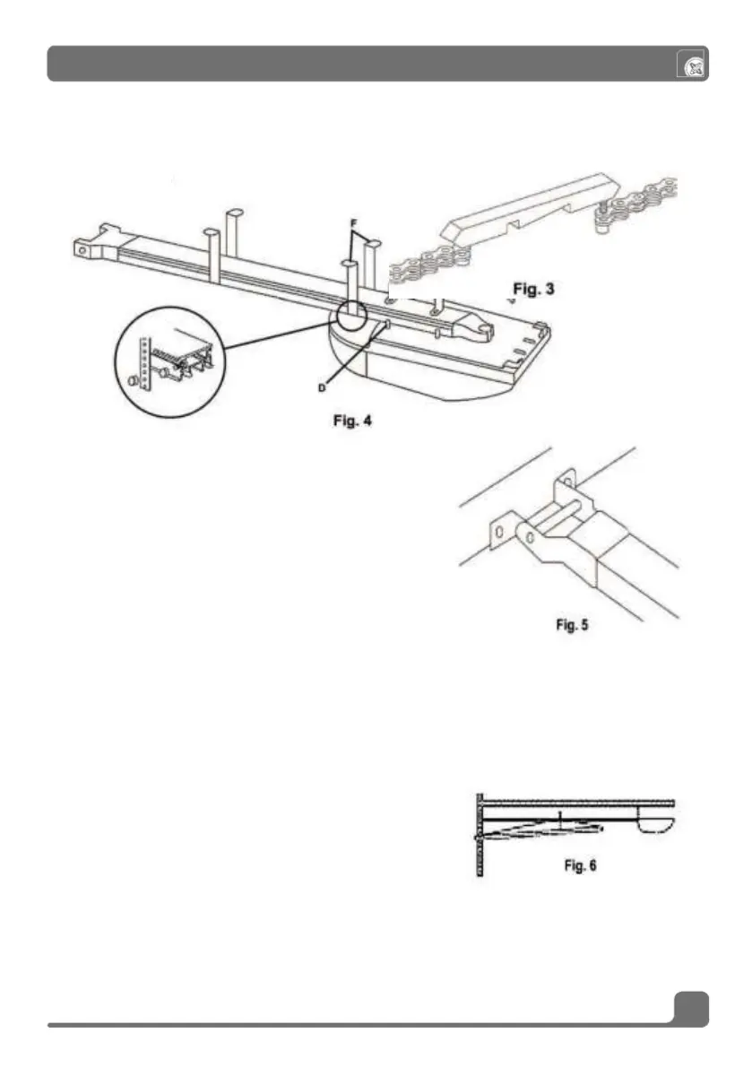 Fissare il binario al telaio o al tetto con il supporto fornito (Fig. 5)