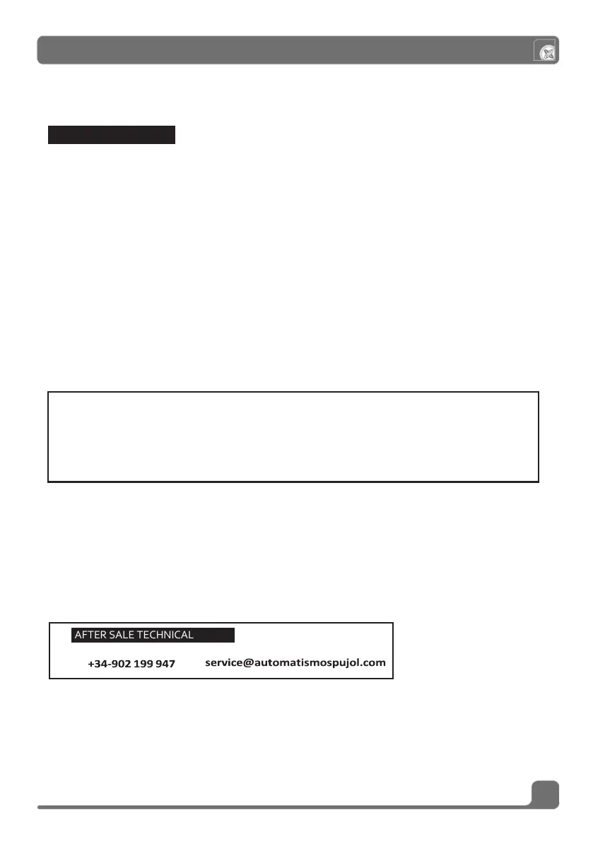 WARRANTY PERIOD Automatismos Pujol guarantees its product against any kind of manufacturing defect in door operators,