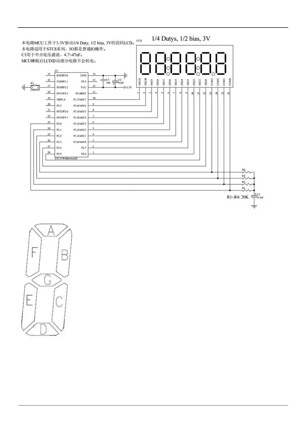 Figure 1 Circuit for driving a ā€˜1/4Duty, 1/2BIAS, 3V’ LCD