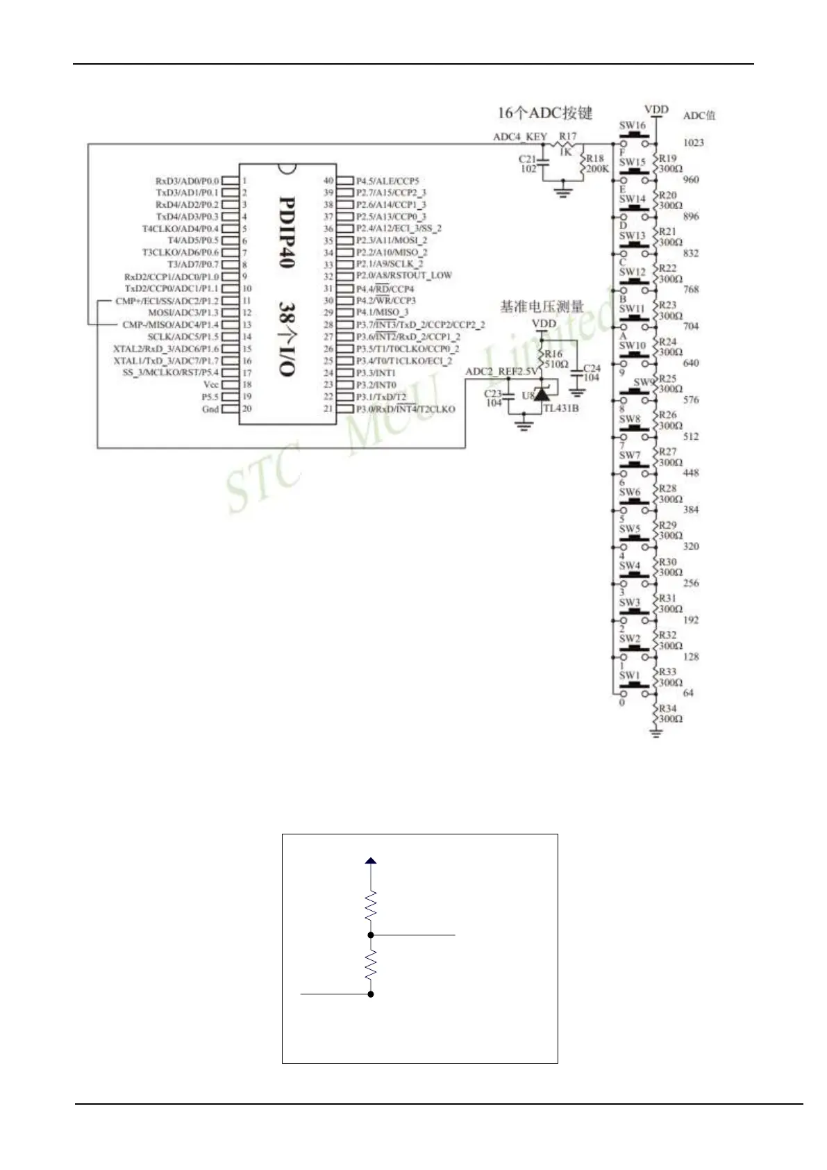 STC micro STC8A8K64D4 Series - Reference Circuit Diagram for Detecting Negative Voltage