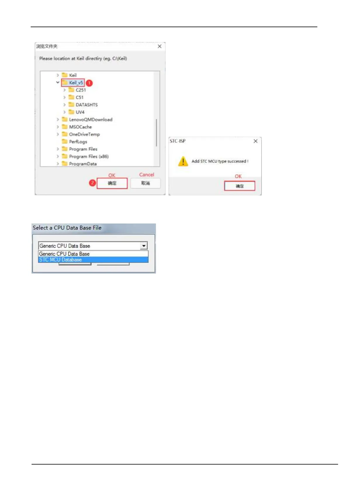 If the driver installation is successful in the first step, there will be an option of "STC MCU Database" in selecting the