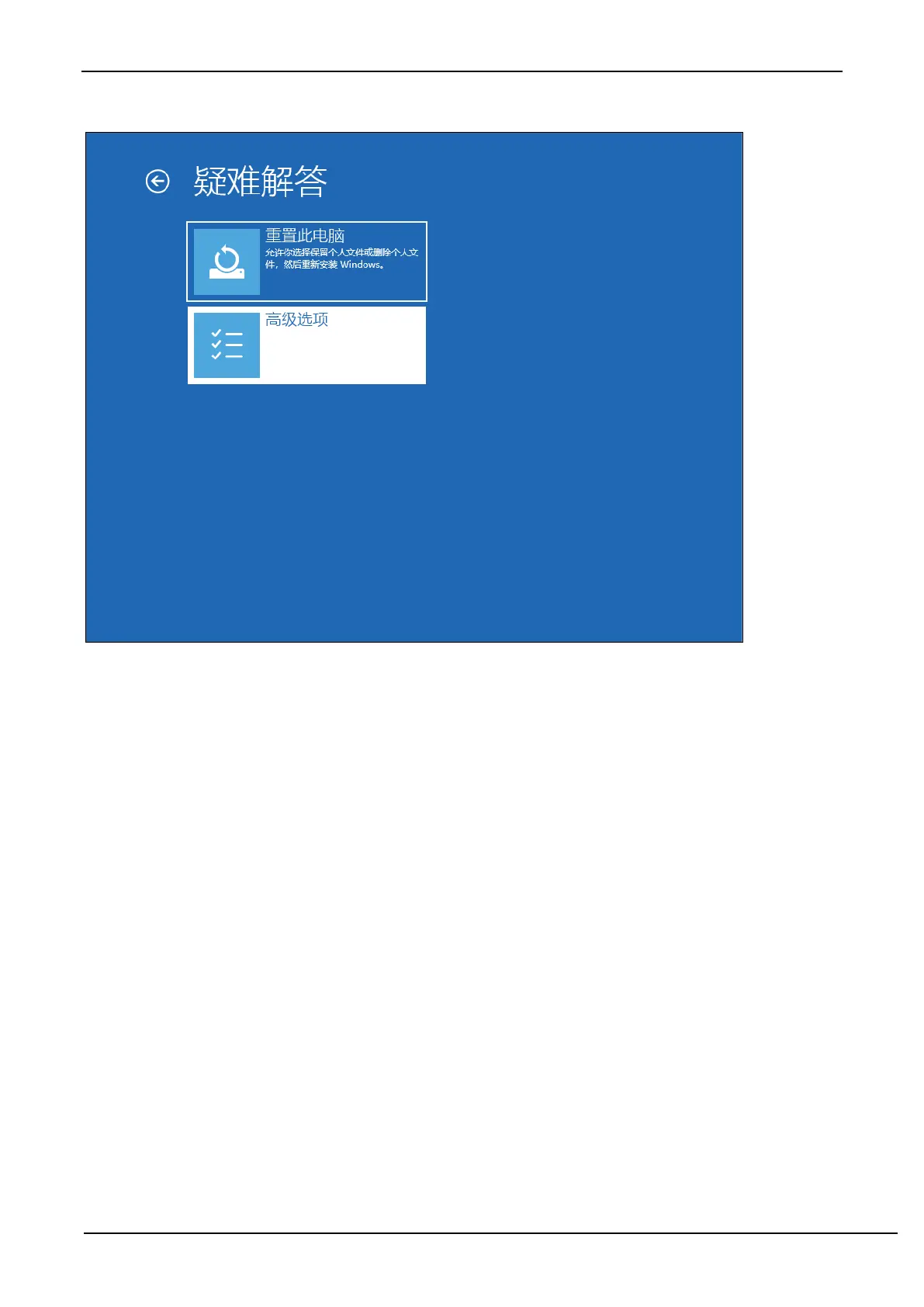 Select "Advanced Options" in the troubleshooting window.