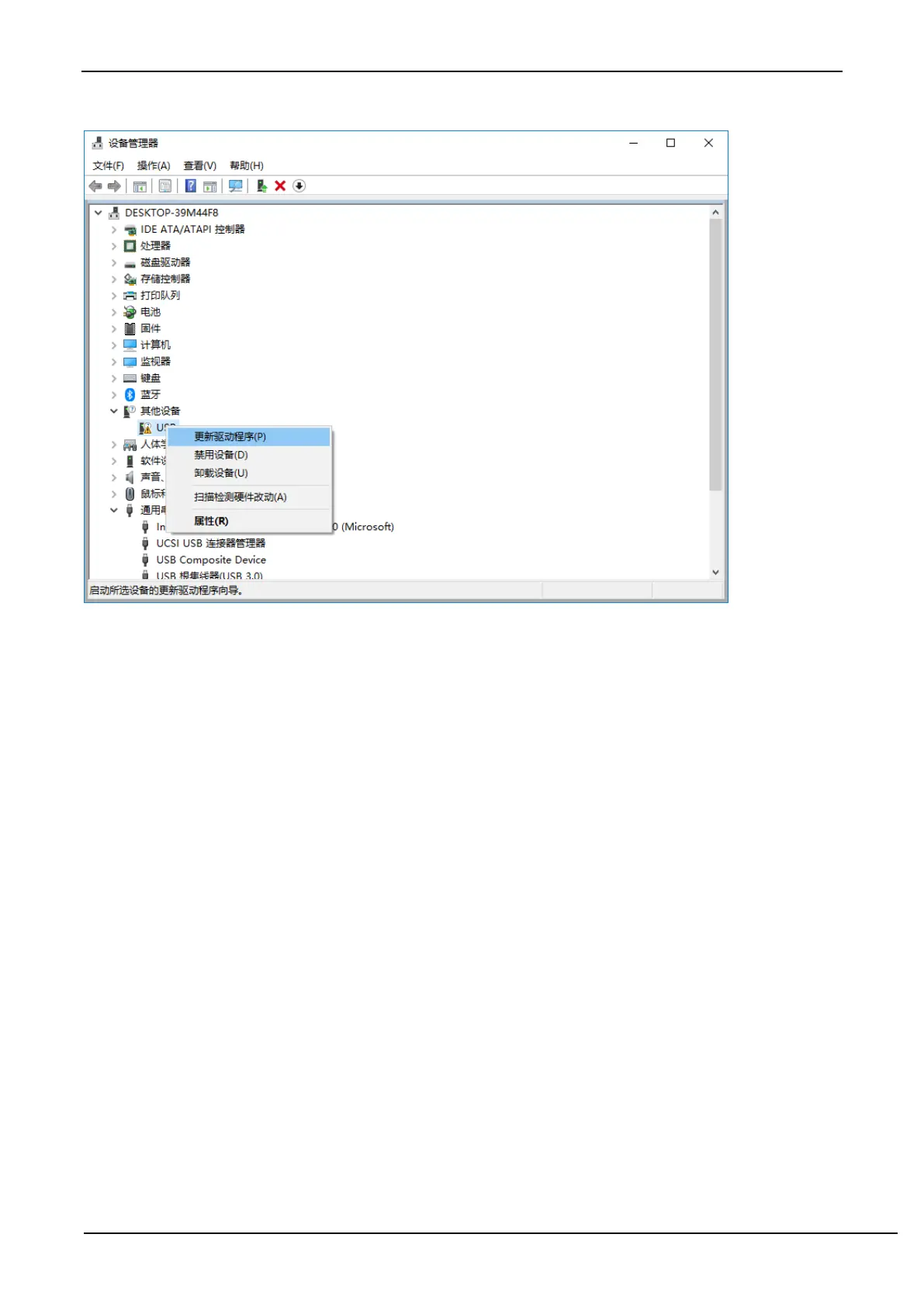 Right-click the unknown device and select "Update Driver" from the right-click menu.
