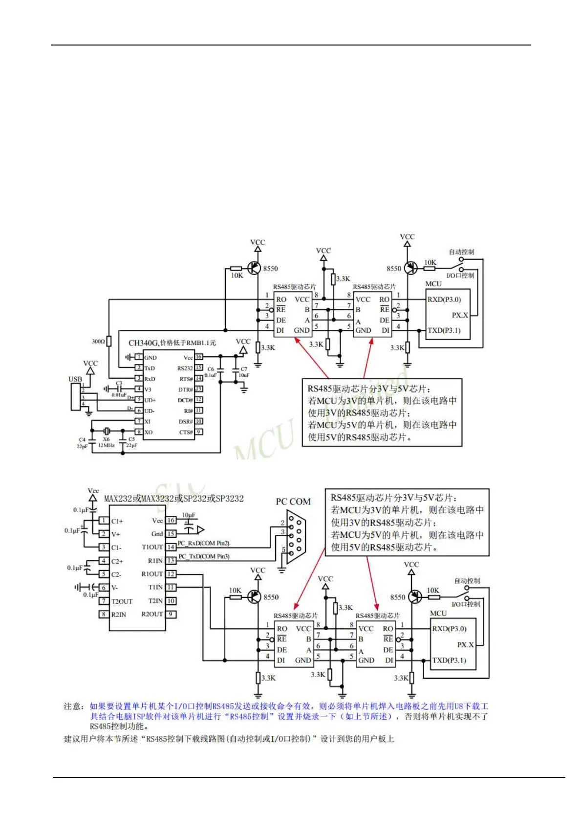 STC micro STC8A8K64D4 Series - Appendix F RS485 Automatic Control or I;O Port Control Circuit Diagram