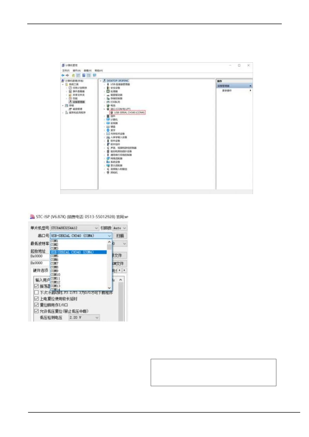 Note: When using STC-ISP to download software later, the selected serial port number must be the corresponding serial