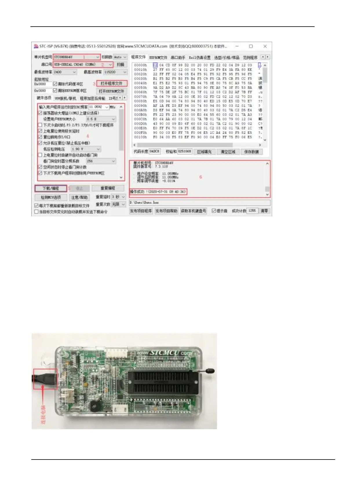 (2) Set up in the STC-ISP download software according to the steps shown in the figure below: