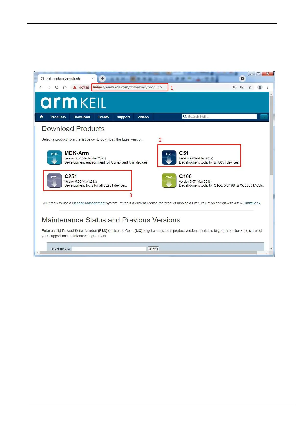 The C51 and C251 development kits can be downloaded from the addresses shown in the figure below