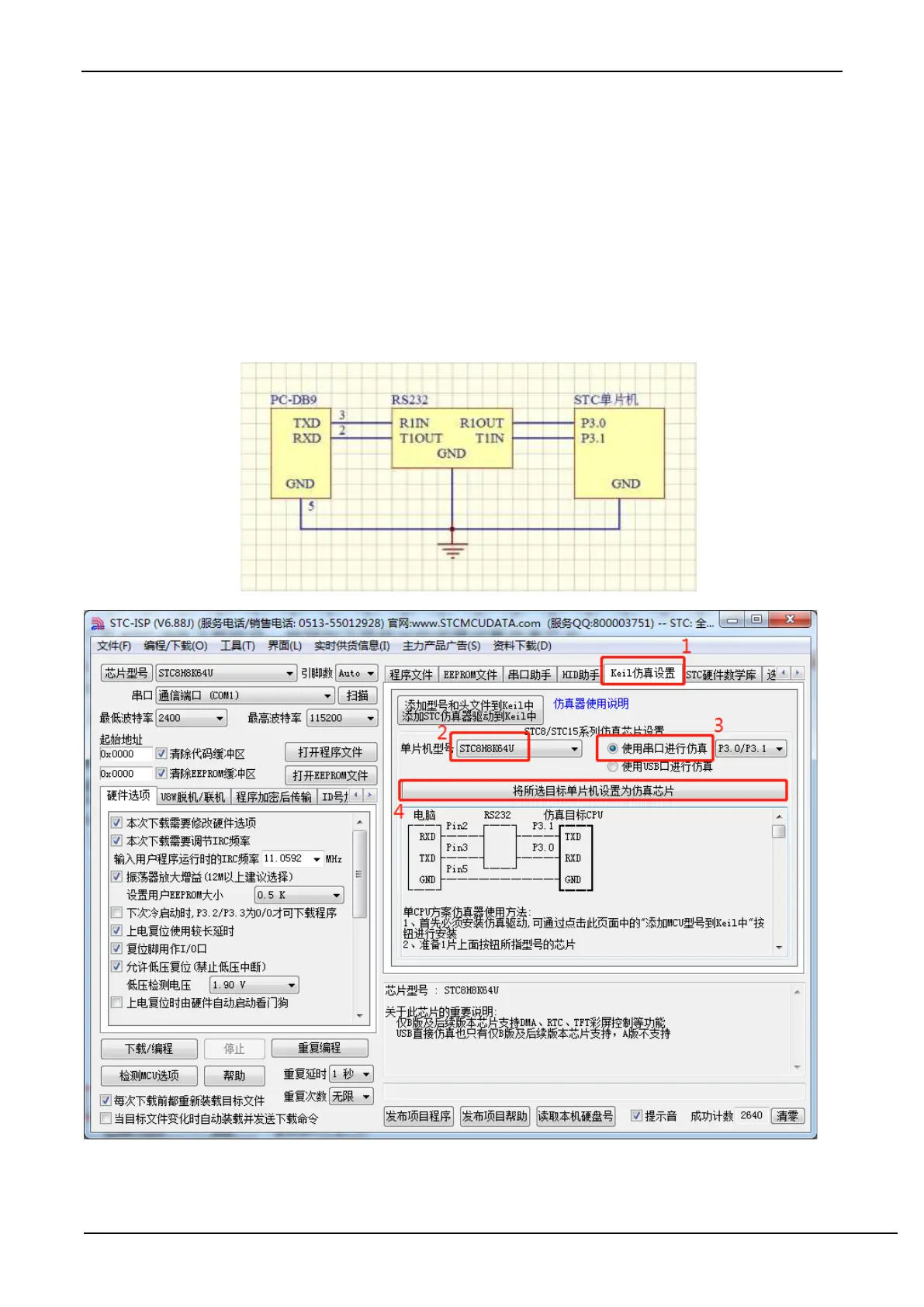 emulation function, you need to use the STC-ISP download software to set the target microcontroller as the emulation