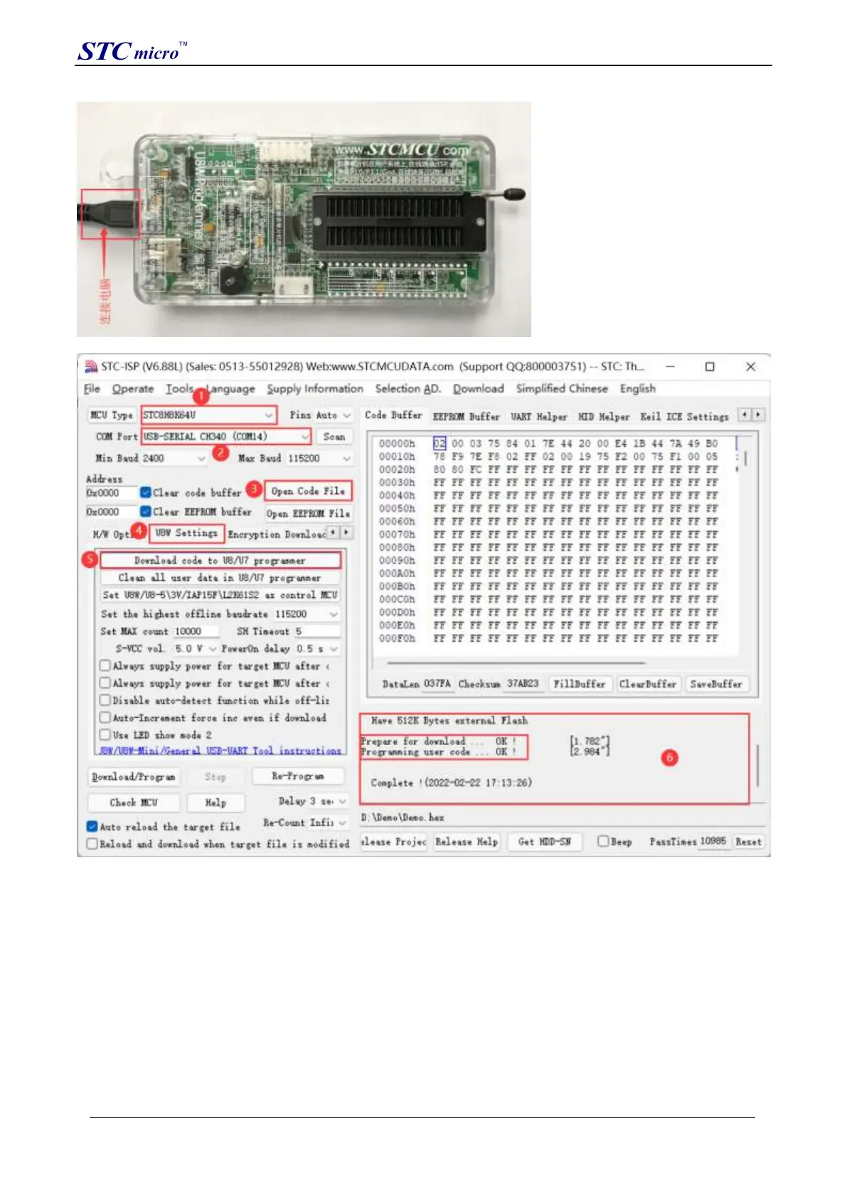 (2) Set up in the STC-ISP download software according to the steps shown in the figure below: