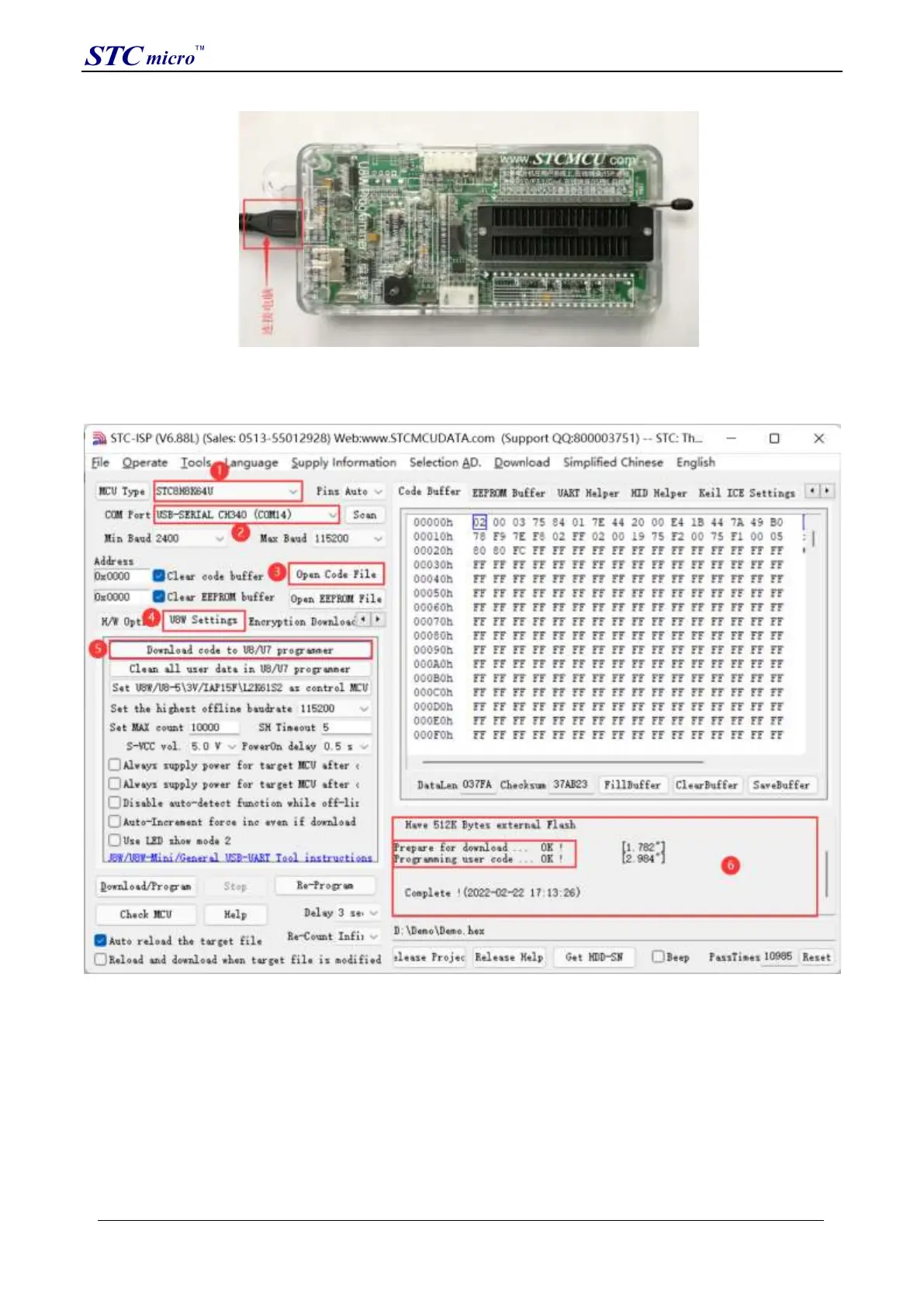 (2) Set up in the STC-ISP download software according to the steps shown in the figure below: