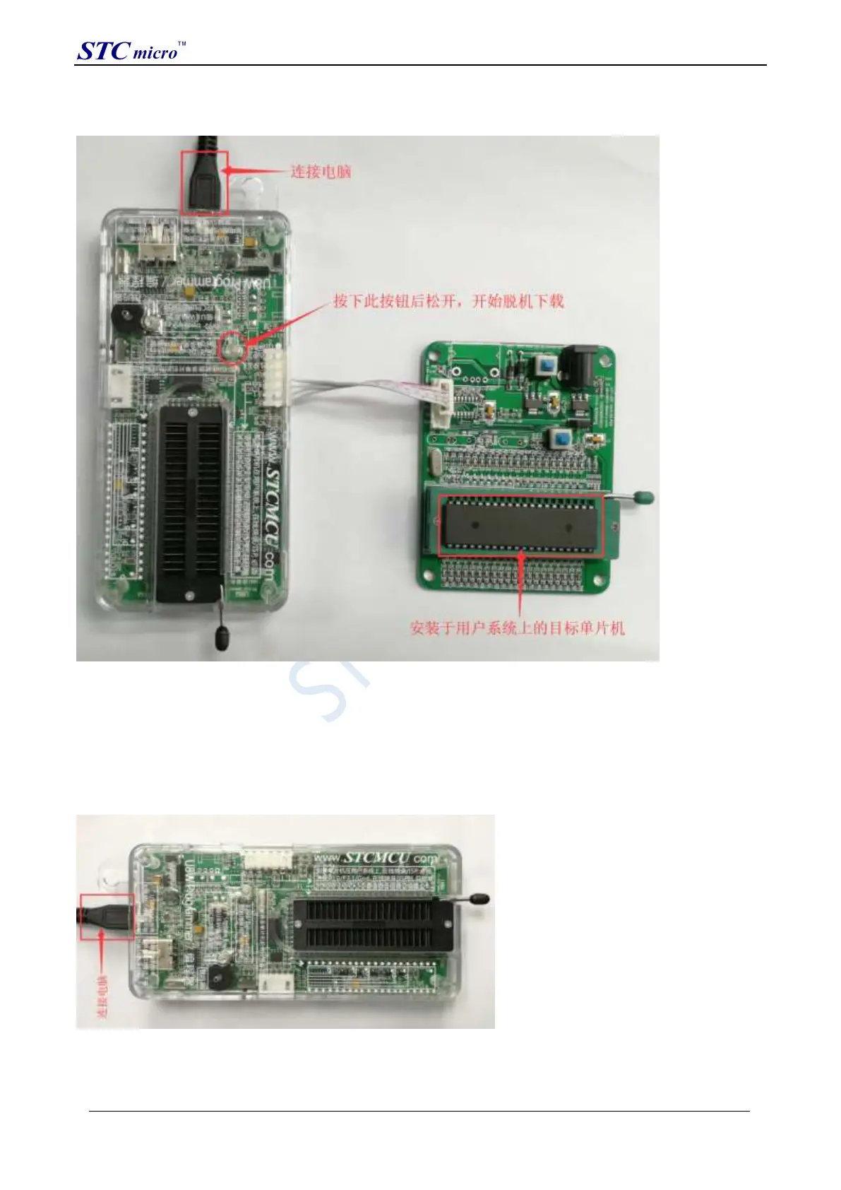(1) Firstly, use the USB cable provided by STC to connect the U8W download board to the computer, as shown