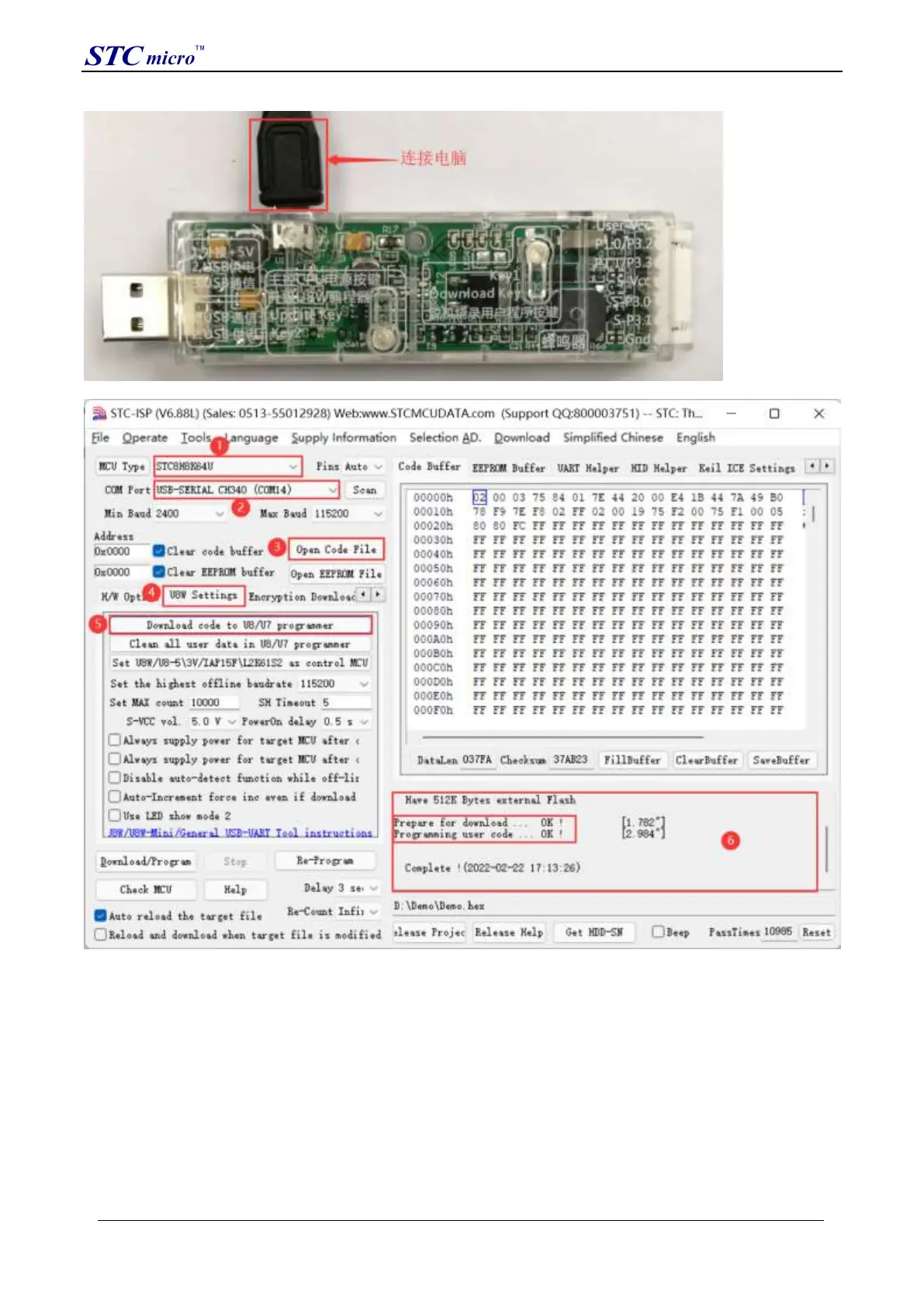 (2) Set up in the STC-ISP download software according to the steps shown in the figure below: