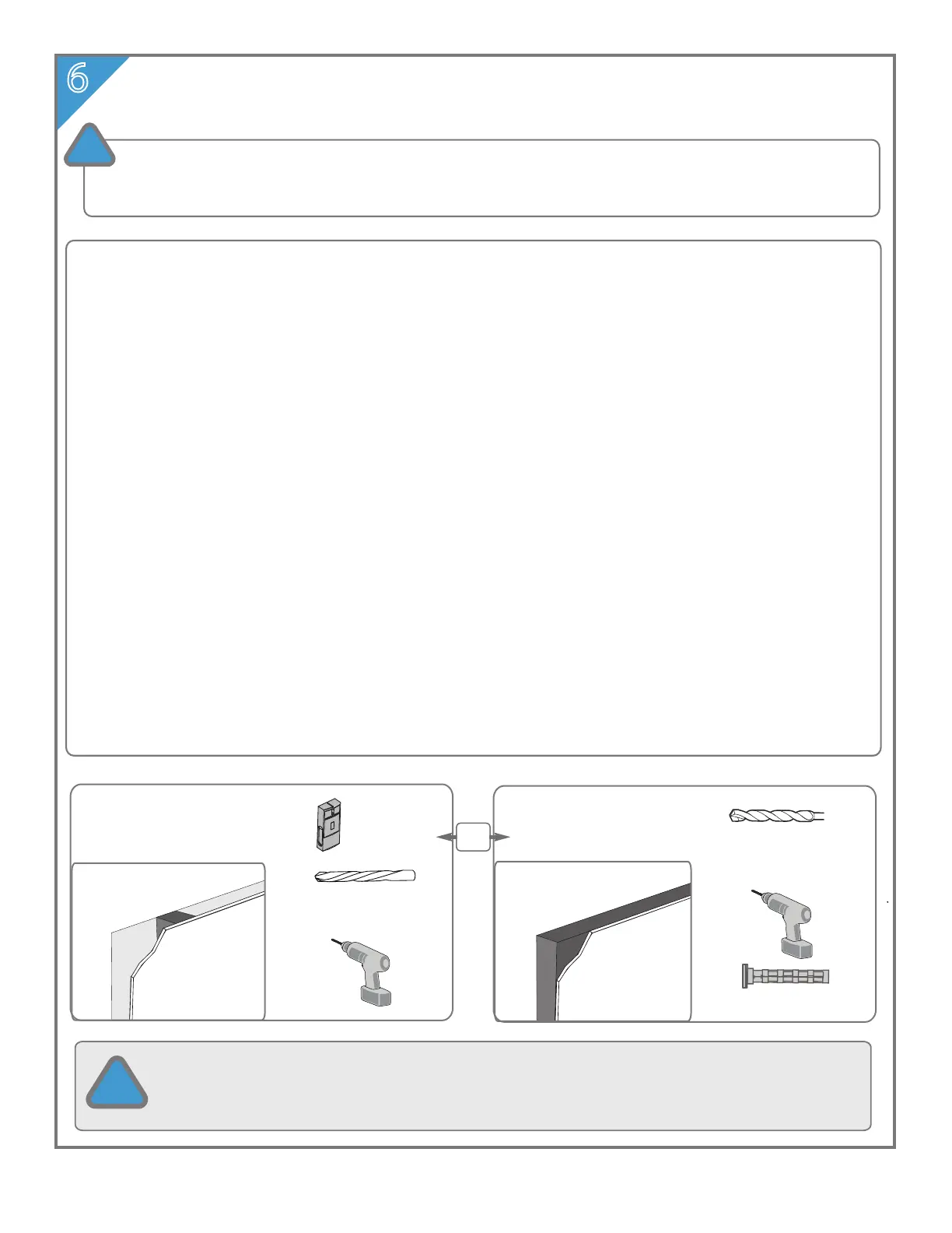 • For concrete walls, check for damaged or loose concrete and do not drill in those areas.