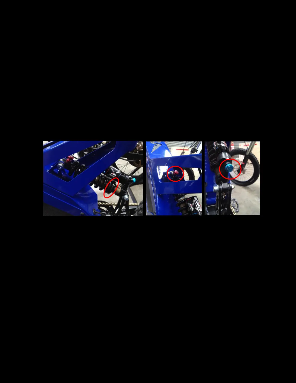 1. Preload and shock firmness is adjusted by increasing or decreasing the rear shock air pressure with a shock pump.