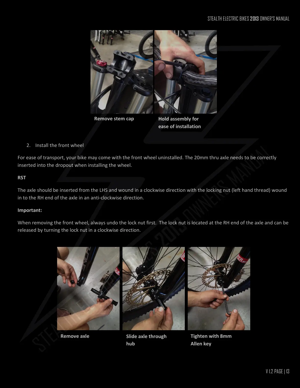 STEALTH ELECTRIC BIKES 2013 OWNER’S MANUAL