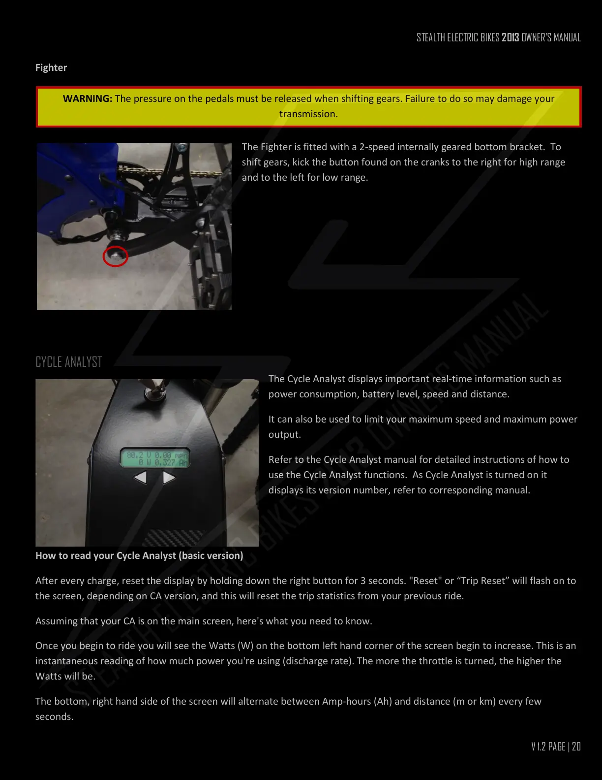 STEALTH ELECTRIC BIKES 2013 OWNER’S MANUAL