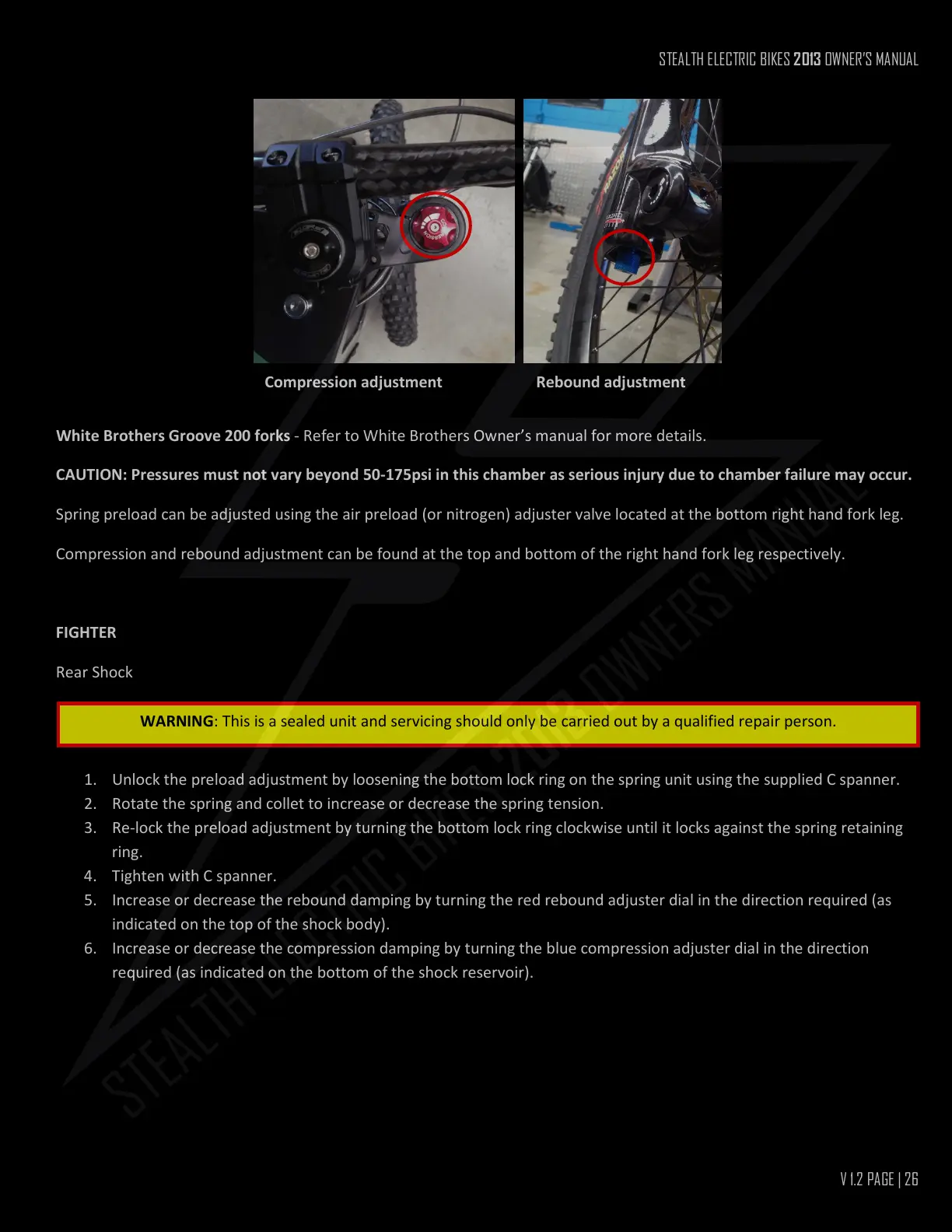 STEALTH ELECTRIC BIKES 2013 OWNER’S MANUAL