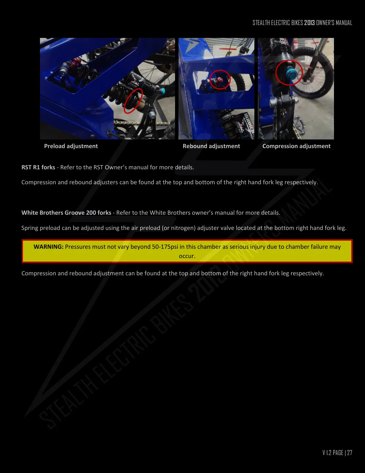 STEALTH ELECTRIC BIKES 2013 OWNER’S MANUAL