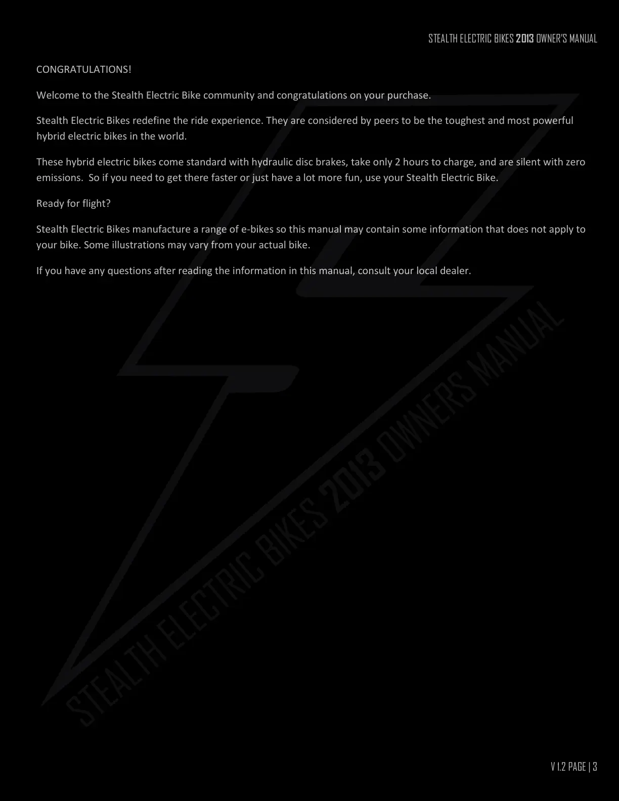 Stealth Electric Bikes manufacture a range of e-bikes so this manual may contain some information that does not apply to