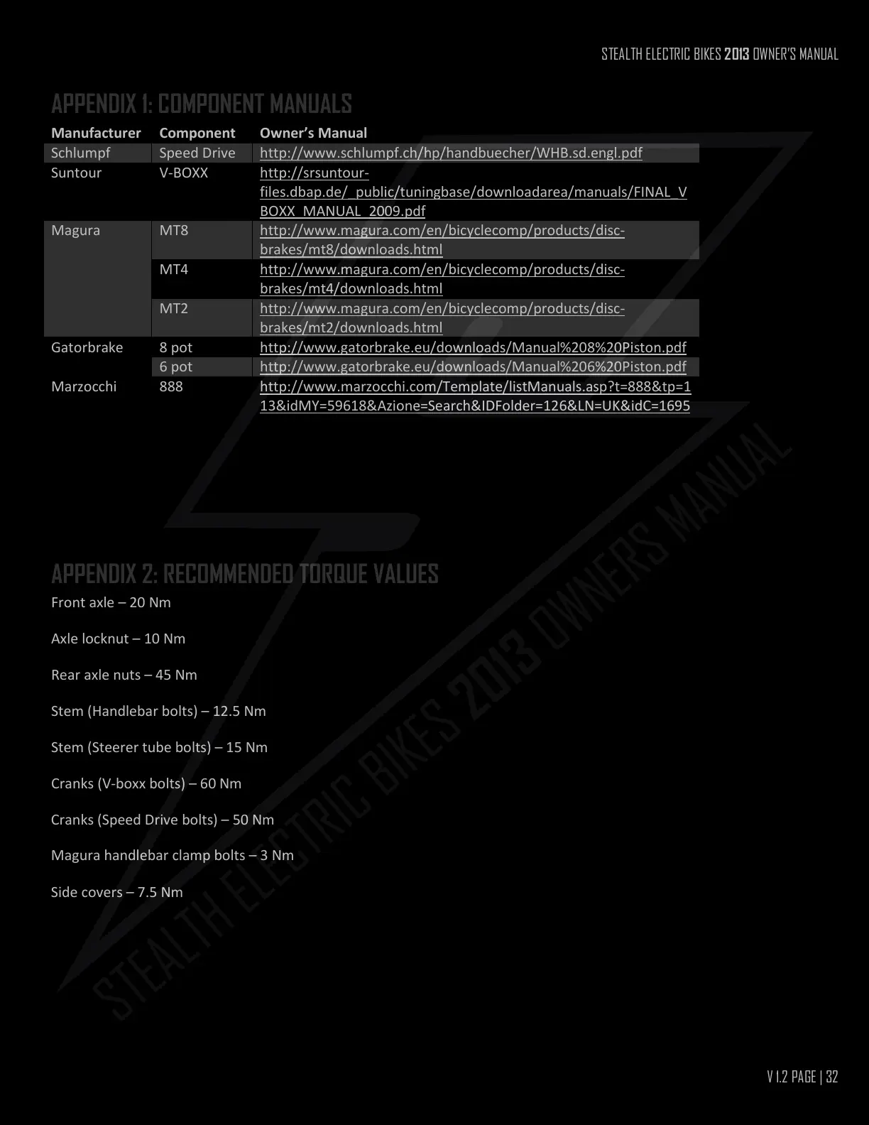 STEALTH ELECTRIC BIKES 2013 OWNER’S MANUAL