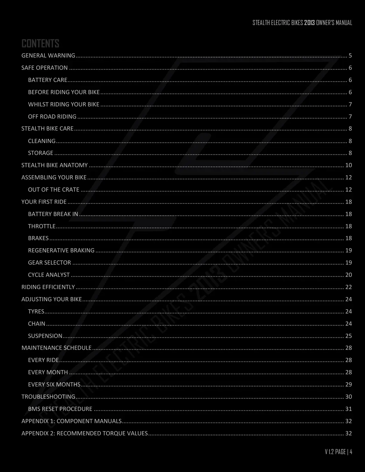 STEALTH BIKE CARE ...................................................................................................................................................................... 8