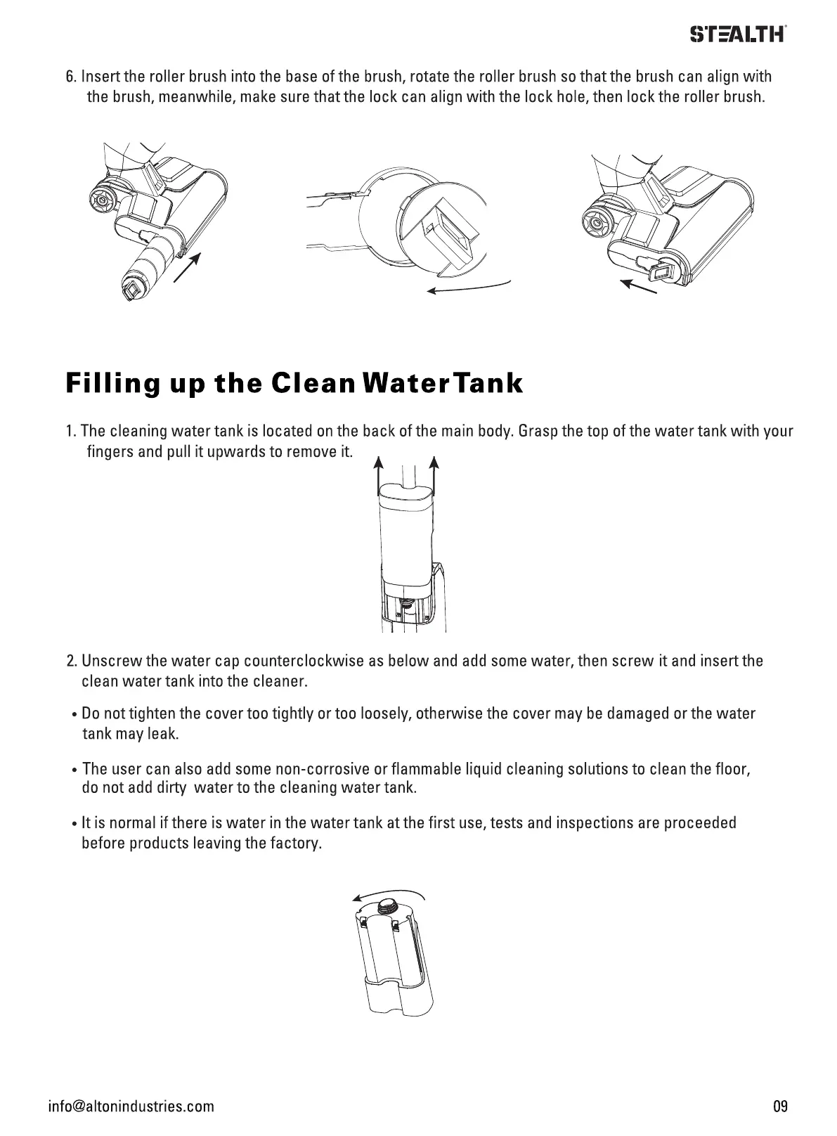 clean water tank into the cleaner.