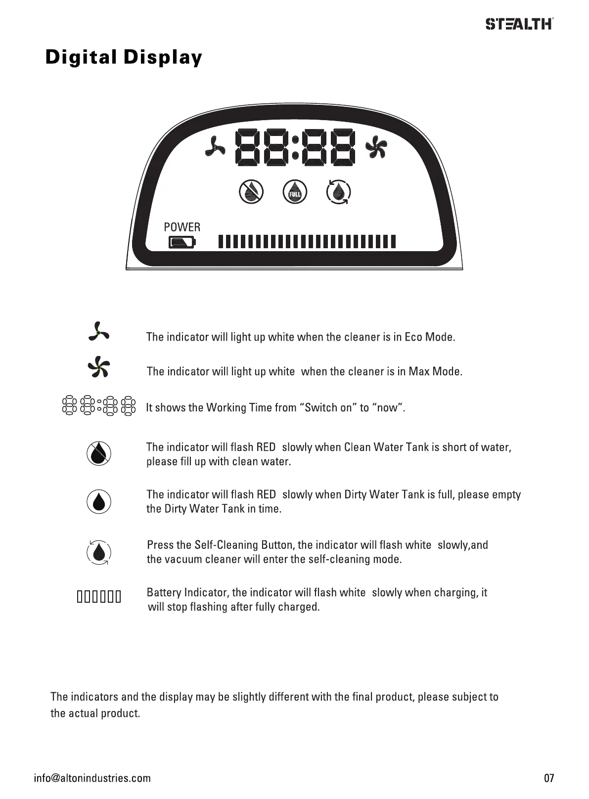 The indicators and the display may be slightly different with the final product, please subject to