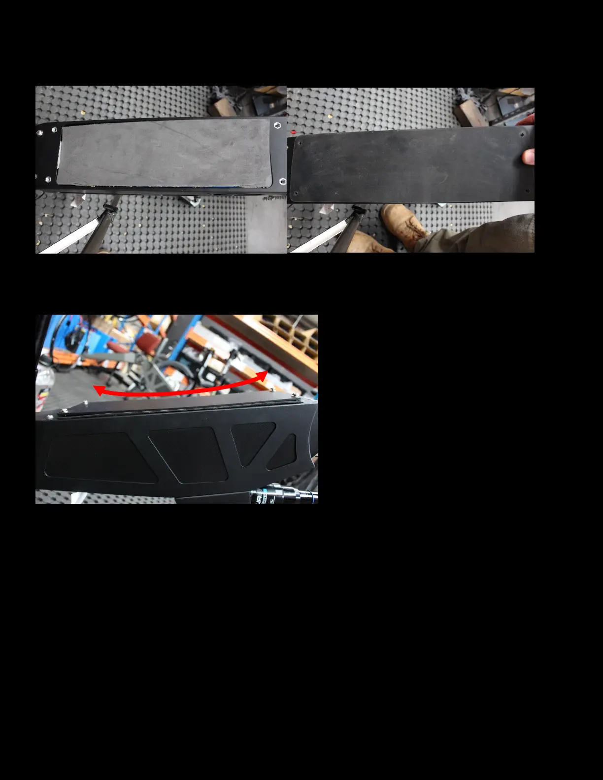 The bottom plate should have a slightly bent shape. It should be oriented so the edges bend away from the frame. This