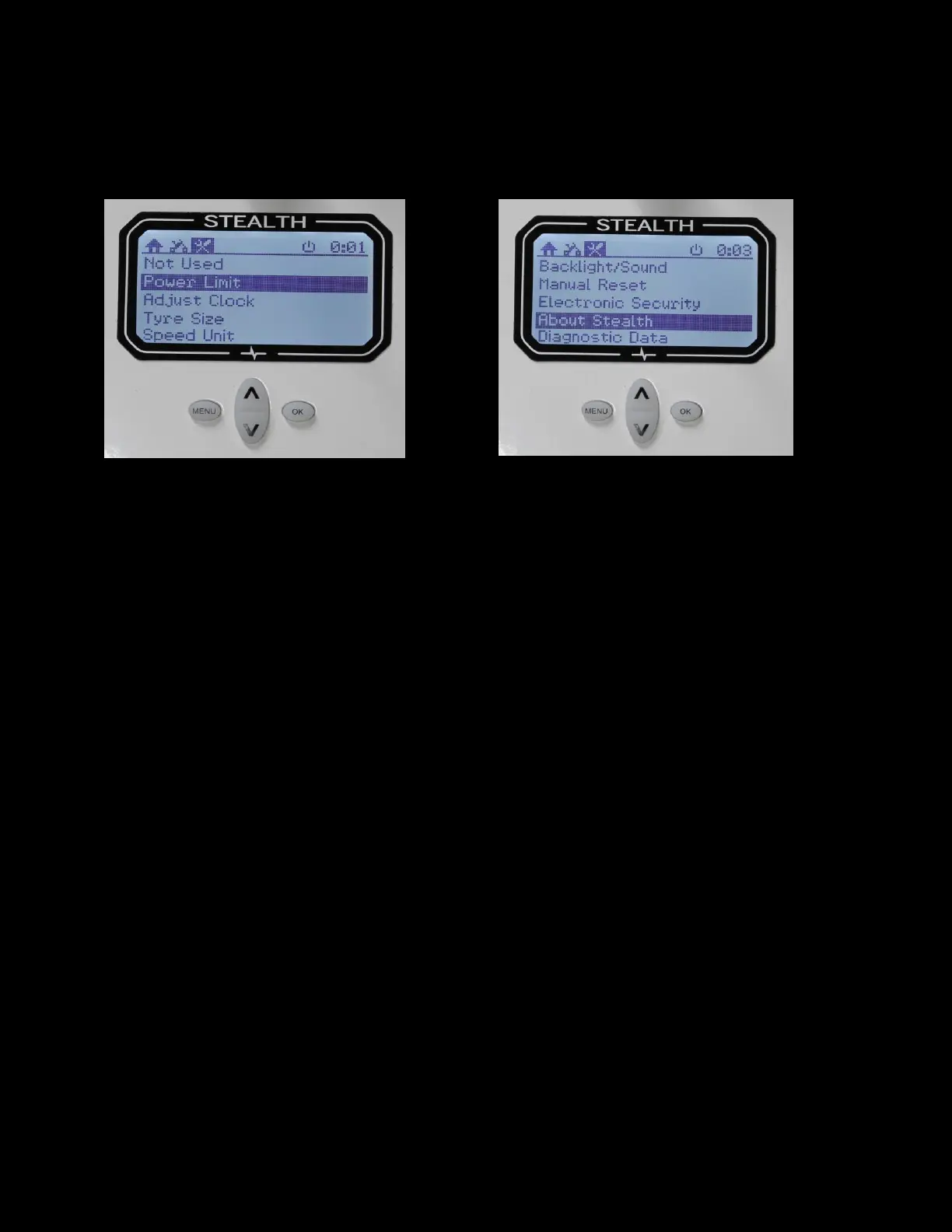 Stealth F-37 - Settings Screen (Stealth P-7); While Riding