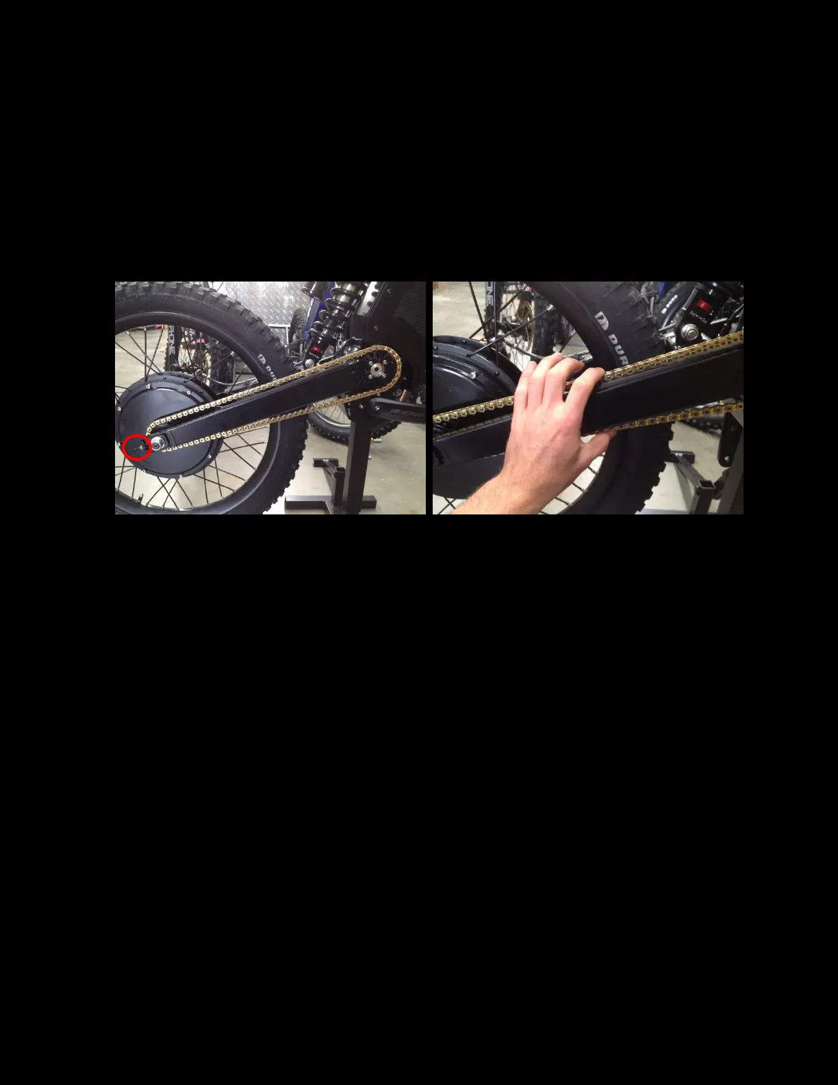 2. Tighten/loosen 10mm on axle adjuster nuts (circled above) to achieve desired tension.