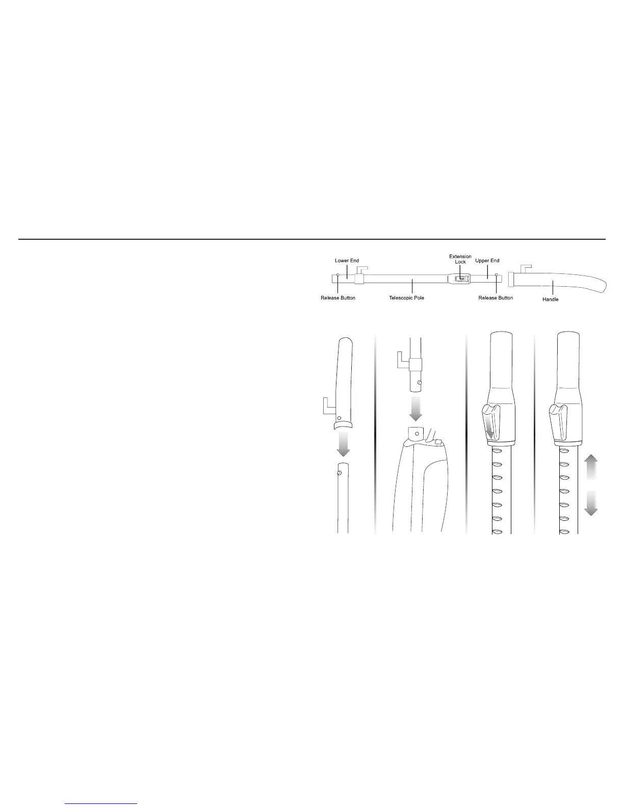 1. Connect Handle to upper, narrower end of Telescopic Pole.