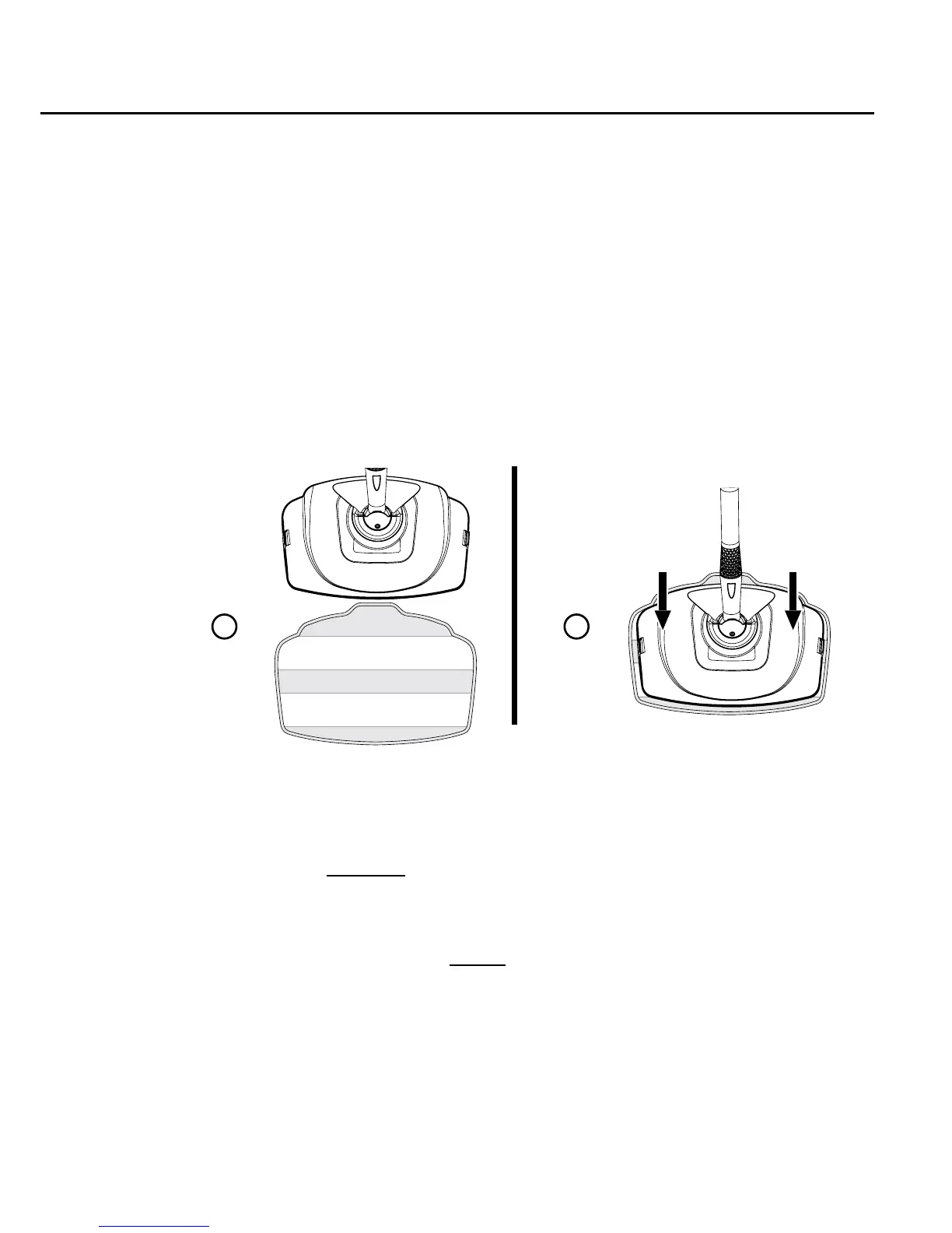 3. Press Mop Head firmly down onto Microfiber Pad. Fastener strips will adhere to Pad Grips
