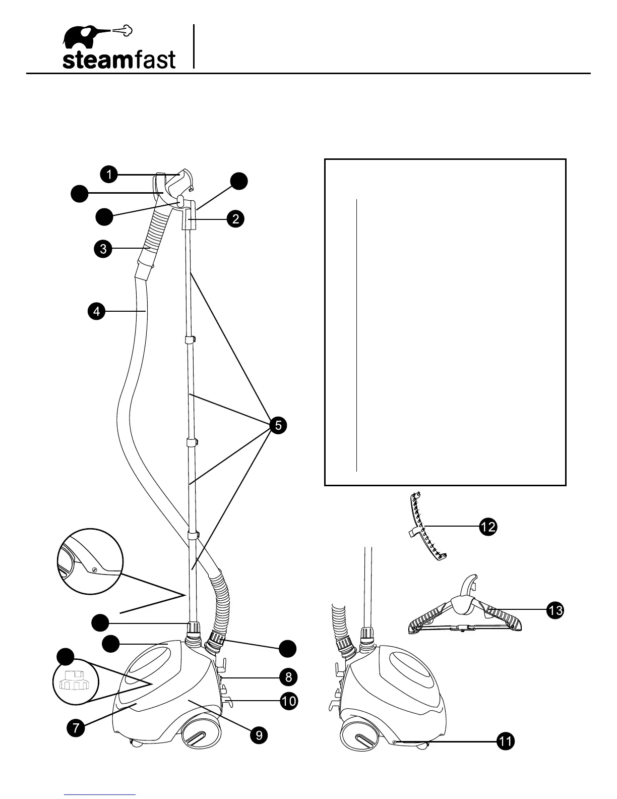 The following features and accessories are included with your Full Size Fabric Steamer. Carefully