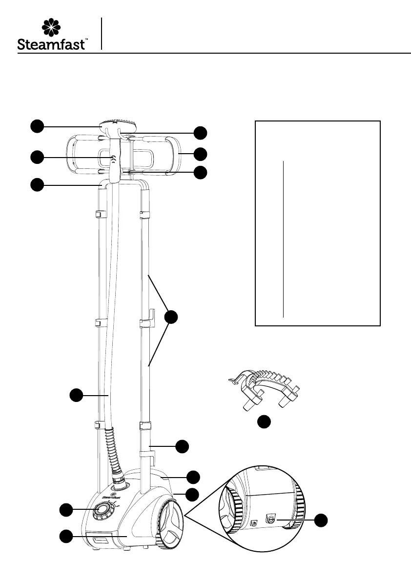 The following features and accessories are included with your Professional Fabric Steamer.